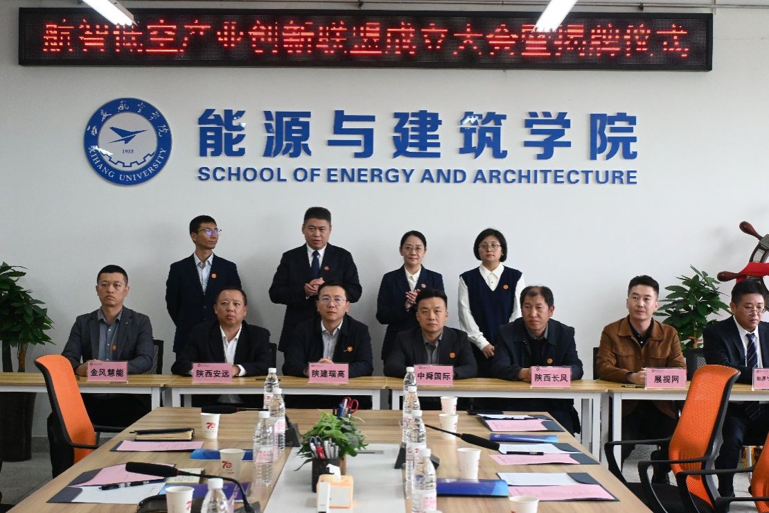 值此西安航空学院建校70周年之际,10月15日下午,“航智低空产业创新联盟”成立大会暨揭牌仪式在能源与建筑学院隆重举行。此举即是向校庆的诚挚献礼,更是学校主动对接国家低空经济战略、深化产学研融合的关键布局。西安航空学院副校长许文丹,陕西陕建瑞高科技园有限公司副总经理张珂,中舜国际工程设计有限公司总经理陈佳斌,陕西安远工程咨询有限责任公司董事长李云龙,北京金风慧能技术有限公司中西分公司区域总经理史浩鹏、人力资源部长刘伟,陕西长风新能源有限公司总经理张宇超、商务经理张佳丽,展视网(北京)科技有限公司区域总经理米坤,能源与建筑学院党总支书记曹国震、副院长张琛、党总支副书记段高陵及教师代表共同出席仪式,仪式由副院长李杰主持。